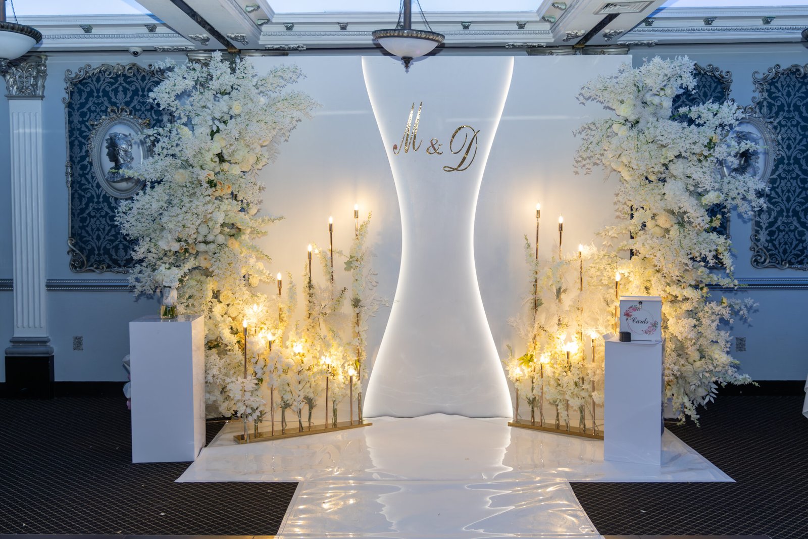 Elegant interior backdrops, dedicated photo zones, and beautiful lighting for stunning wedding photography.